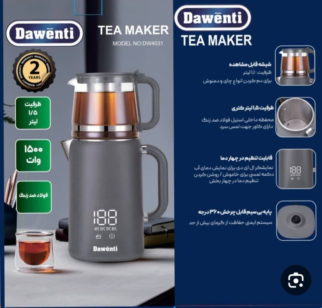⚜️قوری و کتری دارای صافی استیل ضد زنگ ⚜️دارای سیستم خاموش کننده خودکار ⚜️مجهز به سیستم هوشمند گرم نگهدارنده 🥇24ماه ضمانت شرکتی🥇