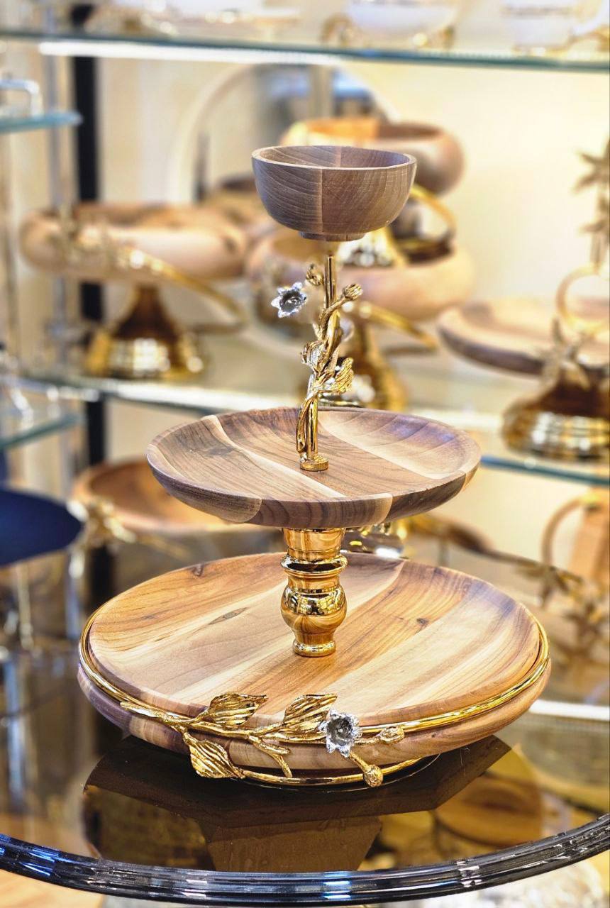 دستهبندی: سرویس پذیرایی چوبیسایر توضیحات: 📌5تکه: شامل میوه خوری ،شیرینی خوری دو طبقه ،آجیل خوری، مزه خوری، شکلات خوری ❌بدون قندان ❌