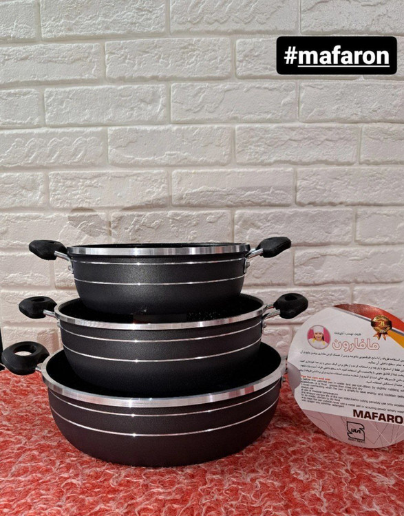 سایر توضیحات: ⚜️گرانیت مشکی_دسته پلاستیکی ⚜️وزن سنگینتر جنس مافارون نسبت به معمولی ⚜️سایزتابه ها(۲۰_۲۴_۲۸) رنگ بندی:مشکی