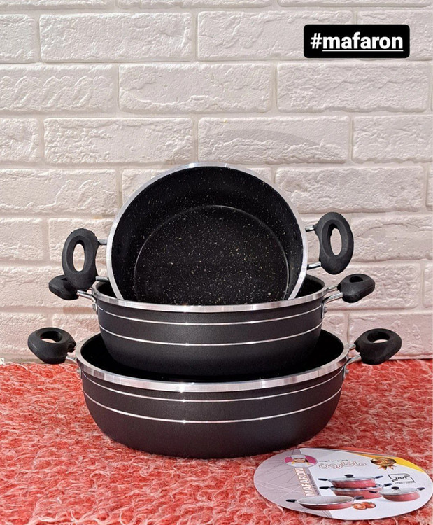⚜️گرانیت مشکی_دسته پلاستیکی ⚜️وزن سنگینتر جنس مافارون نسبت به معمولی ⚜️سایزتابه ها(۲۰_۲۴_۲۸) رنگ بندی:مشکی